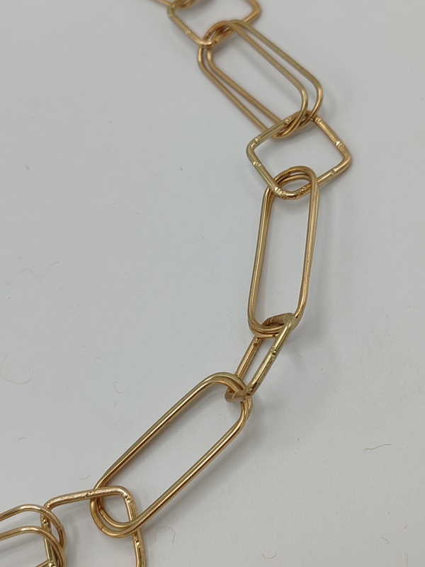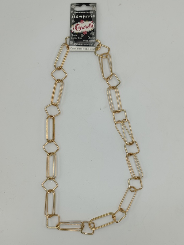 Catena colore oro antico con maglia a forme geometriche cm 2 x 2 e cm 1,5 x 4.