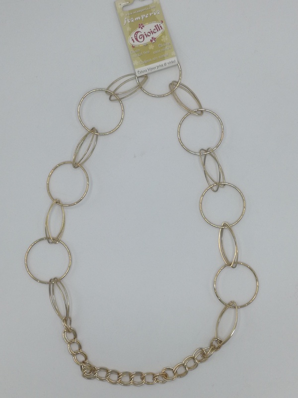 Catena colore oro antico con maglia tonda, anello diametro 4,5 cm.