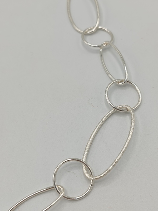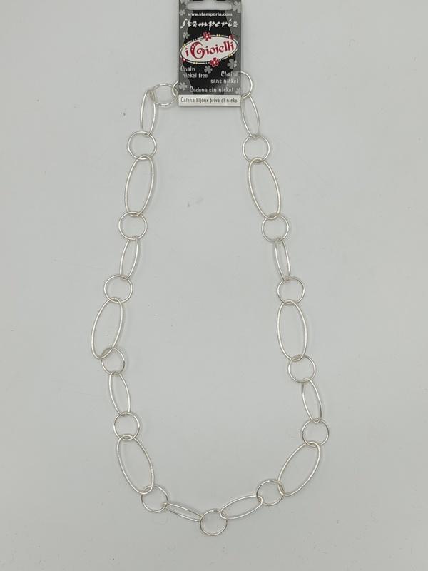 Catena colore argento maglia ovale martellata con anelli diametro 1,4cm e cm 3 x 1.