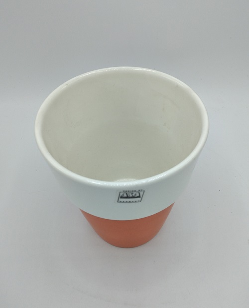 Corpivaso in ceramica con bordo bianco lucido e colore arancio.