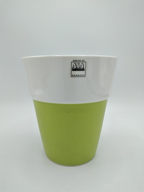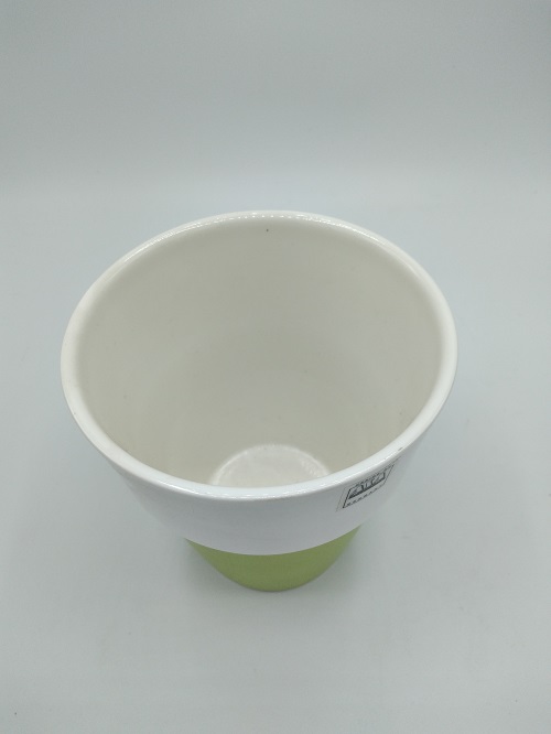 Coprivaso in ceramica con bordo bianco lucido e colore verde chiaro.