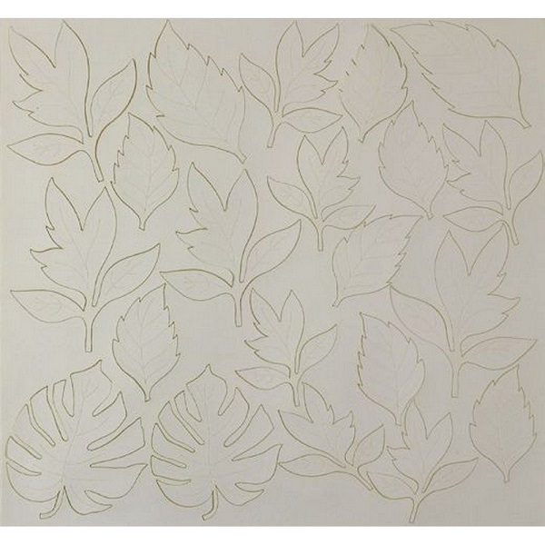 Foglio di eco pelle colore bianco, pretagliato, con 21 foglie in varie forme e dimensioni.