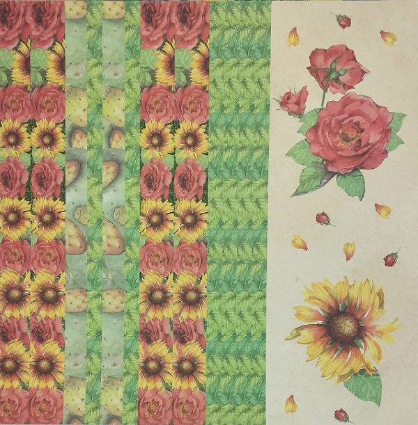 Foglio scrap singolo strisce rose, girasoli e fichi