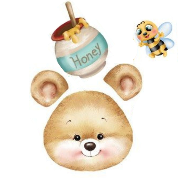 Fommy stampato con il viso di un orsetto con apina e miele, da utilizzare per realizzare bellissimi pupazzi.