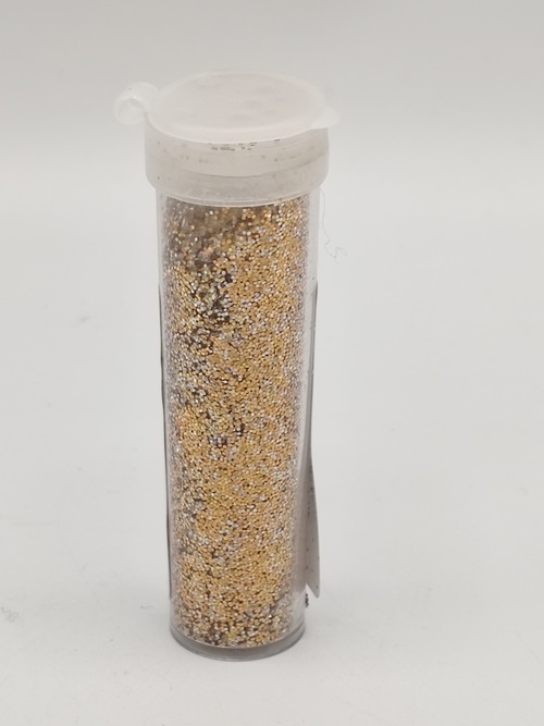 Tubetto di glitter sottile colore oro iridescente con tappo spargiglitter.