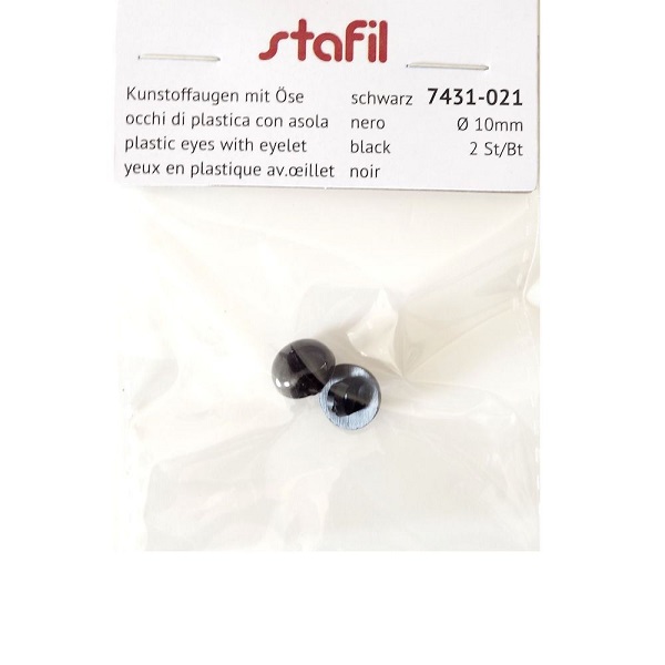 Coppia di occhi di plastica neri con asola.
