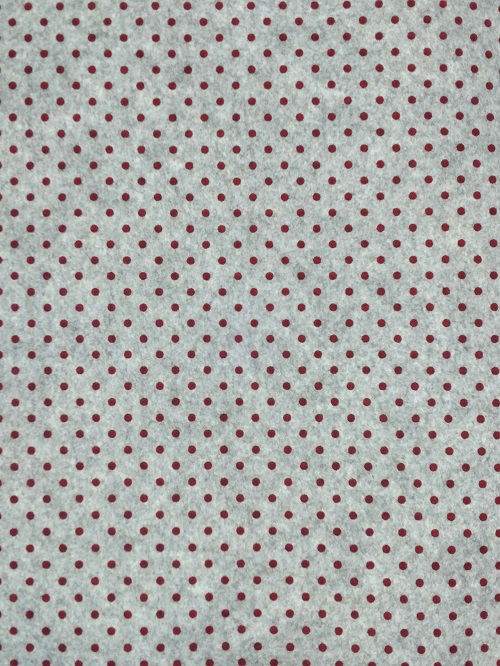 Foglio di pannolenci grigio melange con pois rossi.