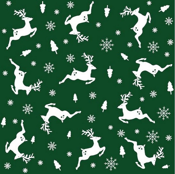 Panno colore Verde Scuro con cervi, alberi di Natale, fiocchi di neve.