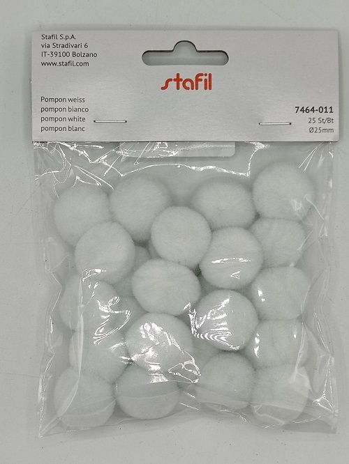 Confezione da 25pz di pompons colore bianco diametro 2,5 cm.