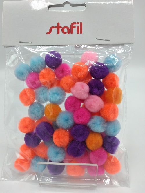 Confezione da 60pz di pompons diametro 15mm in colori pastello assortiti