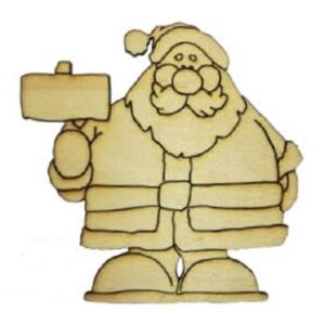 Sagoma in legno raffigurante Babbo Natale con cartello.