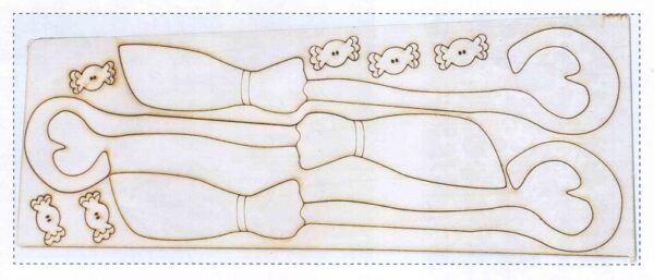 Kit di sagome in legno pretagliate di scopette per streghette e caramelle.