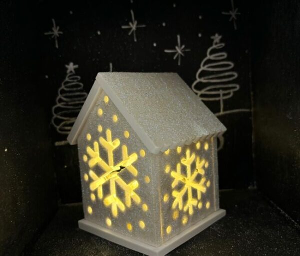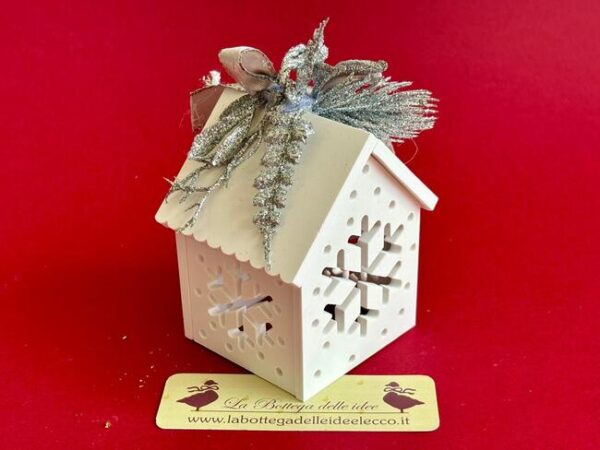 La casetta assemblata può essere illuminata con fili di luci led a pile o t-light elettriche a pile.