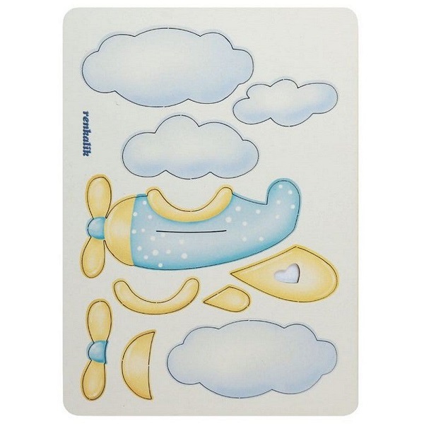 Confezione da 10 sagome in cartone vegetale, pretagliato e colorato, a forma di aeroplanino boing e nuvolette by Renkalik.