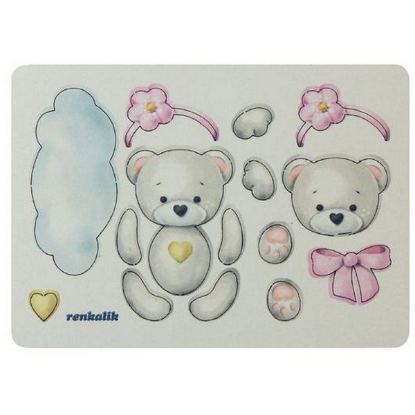 Confezione da 15 sagome in cartone vegetale, pretagliato e colorato, a forma di orsetta con cerchietto e fiocco rosa, cuore e nuvoletta by Renkalik.