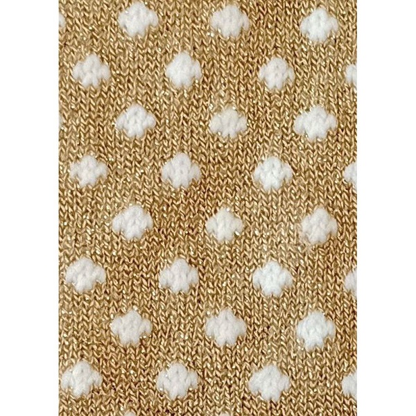 Tubolare in maglia colore ambra e bianco con fili di lurex che lo rendono luminoso by Renkalik.
