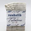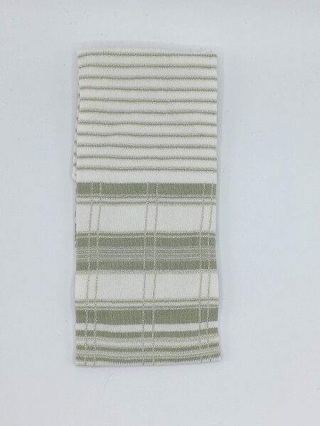 Tubolare con due fantasie (40 cm Tartan e 20 cm rigato) colore verde salvia, latte e lurex oro che rende brillante il tessuto.