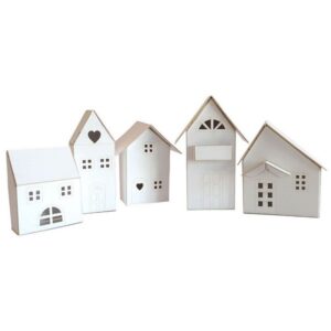 Confezione da 1 foglio di cartone vegetale pretagliato (da piegare ed incollare) per realizzare 5 casette in varie forme e dimensioni.